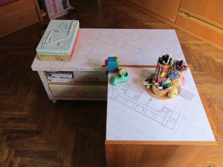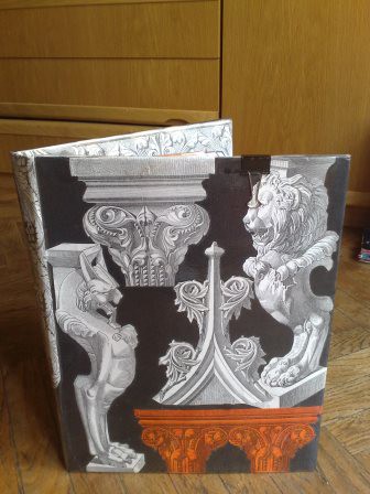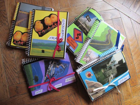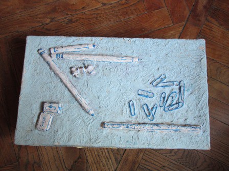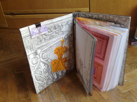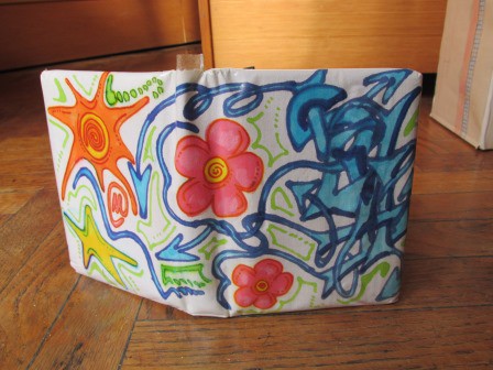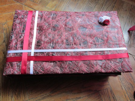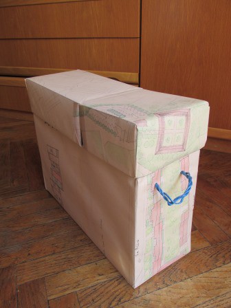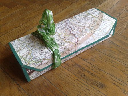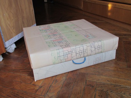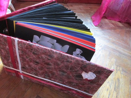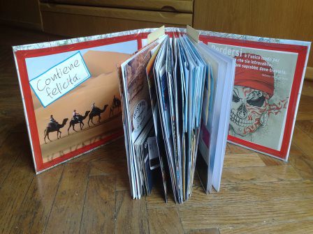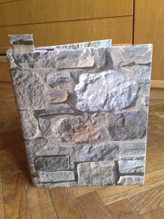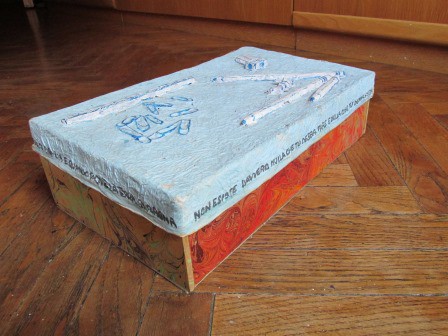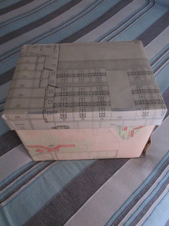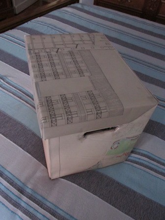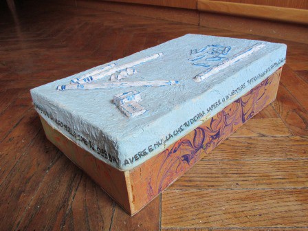 Rivestimento di contenitori e oggetti con carta, stoffa e altro.