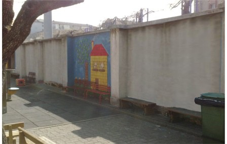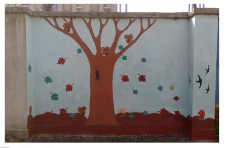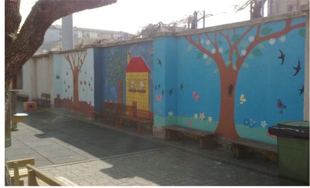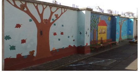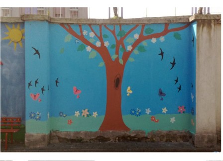 Collaborazione nella realizzazione con i bambini della scuola dell'infanzia di un murales sul tema della riqualificazione del verde urbano.