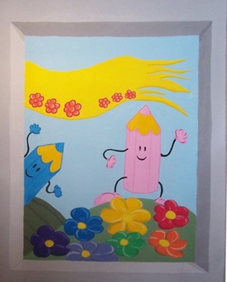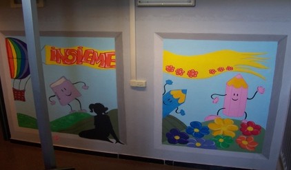 Laboratorio effettuato con i bambini della scuola primaria sul tema del murales. Progettazione e realizzazione di due murales da inserire nei corridoi della scuola.